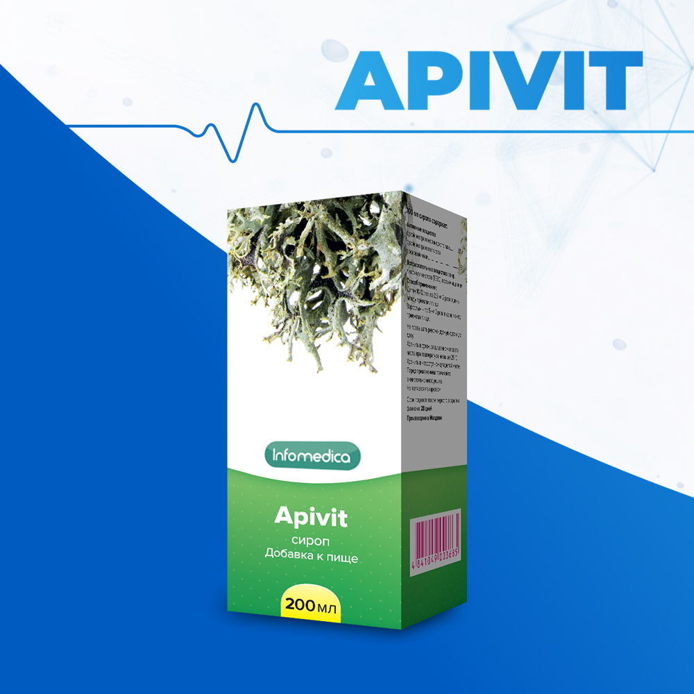 APIVIT sirop, este un produs natural, care conține substanțe extractive din extract uscat din mușchi de piatră și extract lichid de peptide din molii de ceară – care reprezintă o sursă bogată de micro- și macroelemente, vitamine, necesare organismului pentru menținerea vieți sănătoase.